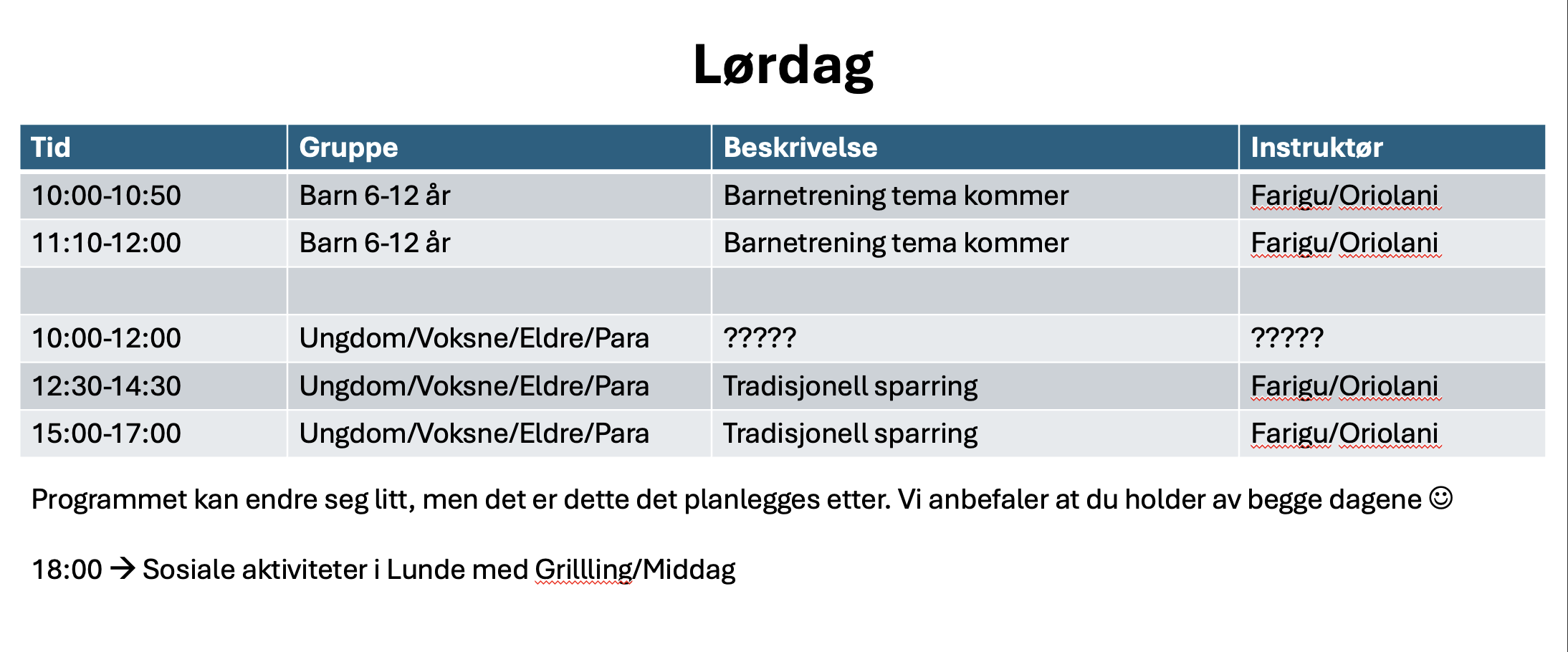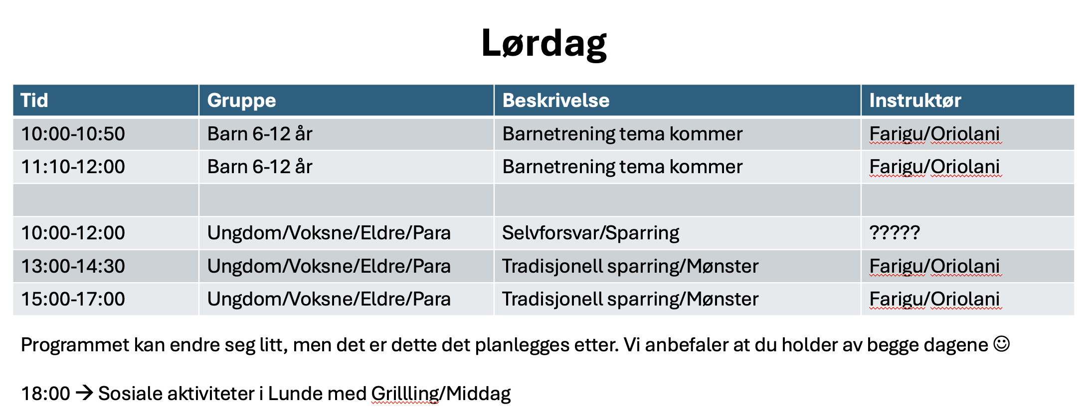 Boost Camp Hva er Boost Camp? Program LØRDAG Program SØNDAG Instruktører Priser Overnatting Transport Hva skjer i Lunde? Påmelding <--- Registration <--- Program lørdag 23. mai