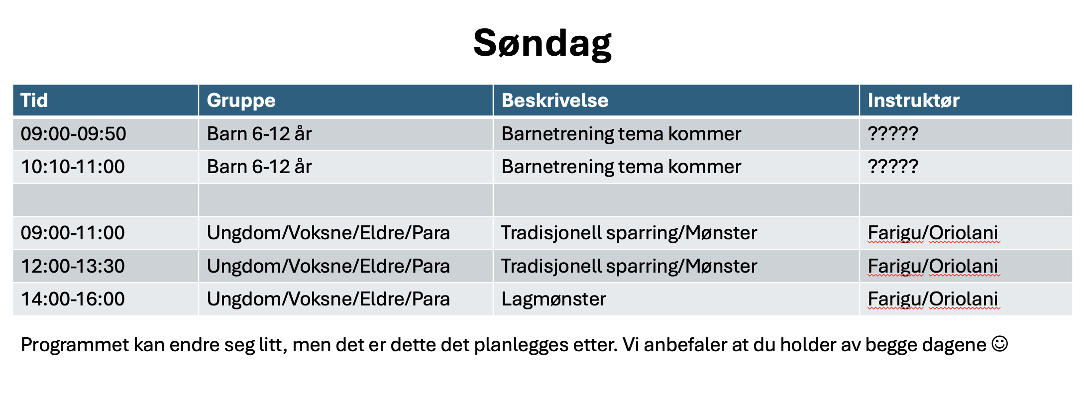 Boost Camp Hva er Boost Camp? Program LØRDAG Program SØNDAG Instruktører Priser Overnatting Transport Hva skjer i Lunde? Påmelding <--- Registration <--- Program søndag 24. mai